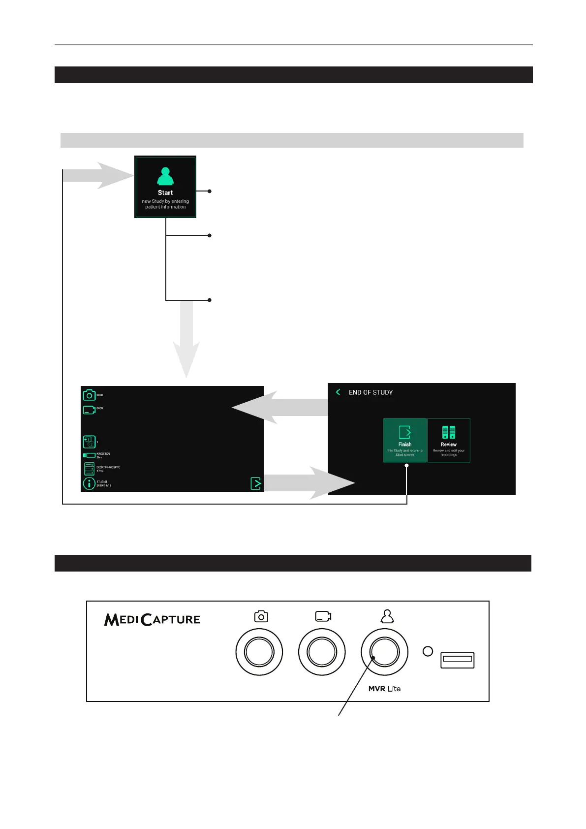 MVR Lite starts with a dened home screen after switching-on or after a study was nished.
