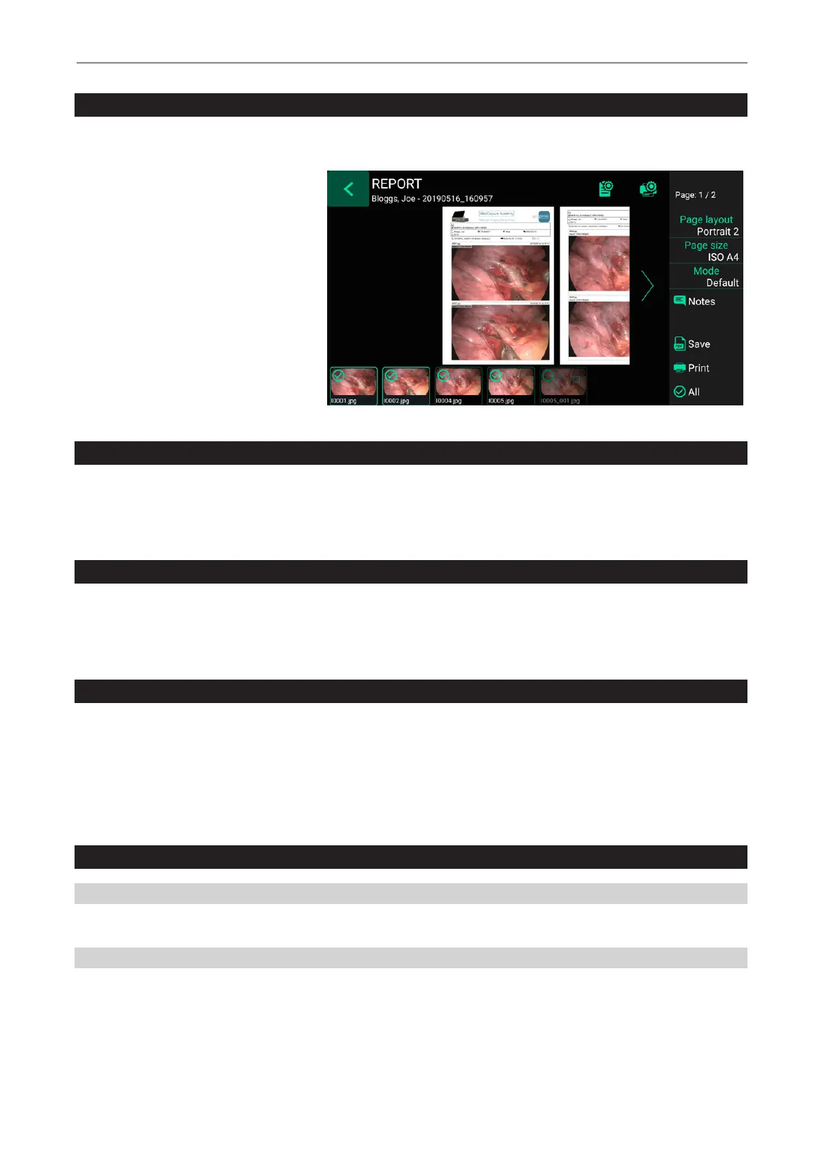 Still images of a selected study can be saved as a PDF report. You can add notes which will appear on the report. The PDF report will