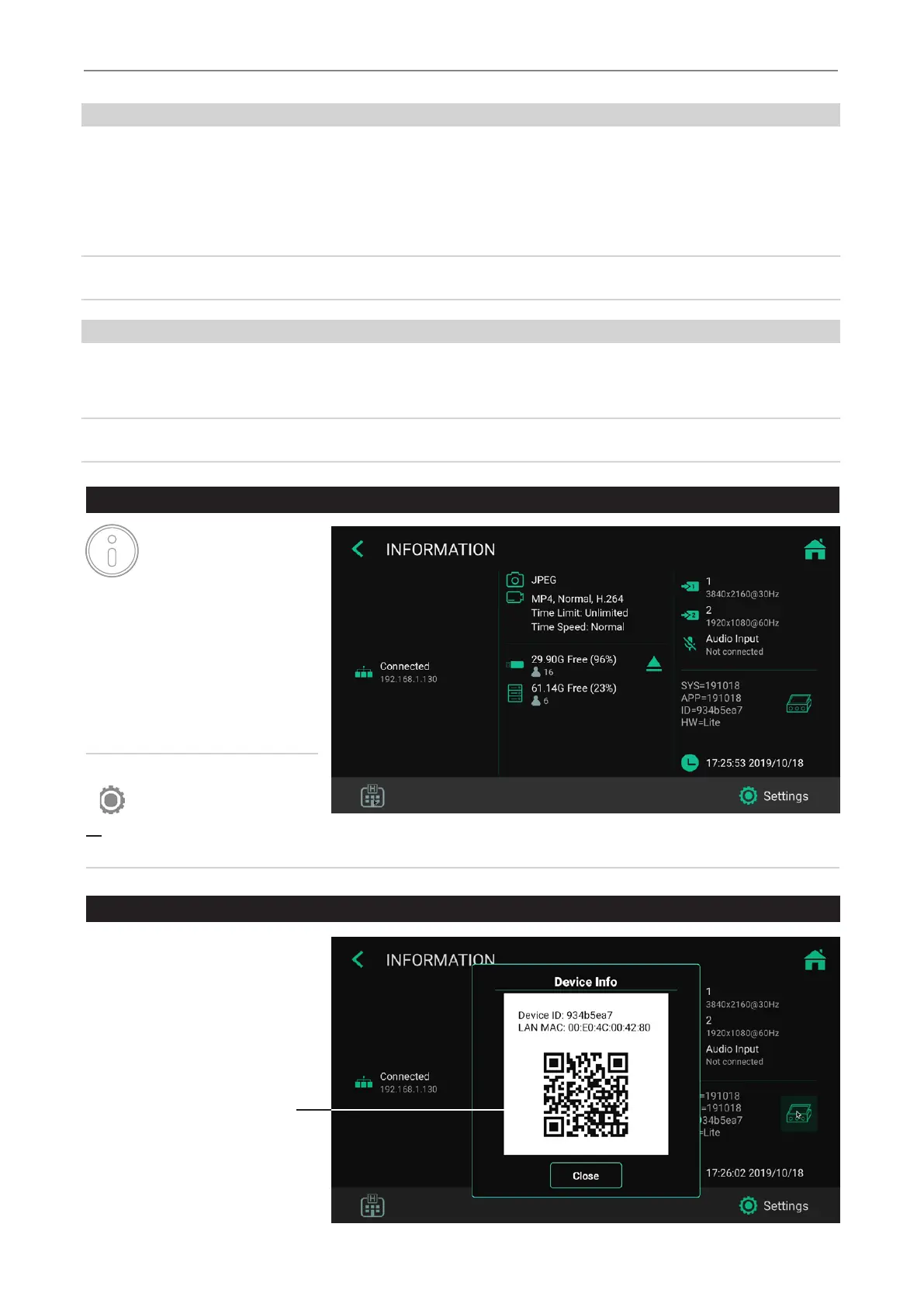 Device Info: Device ID / LAN MAC address / QR code