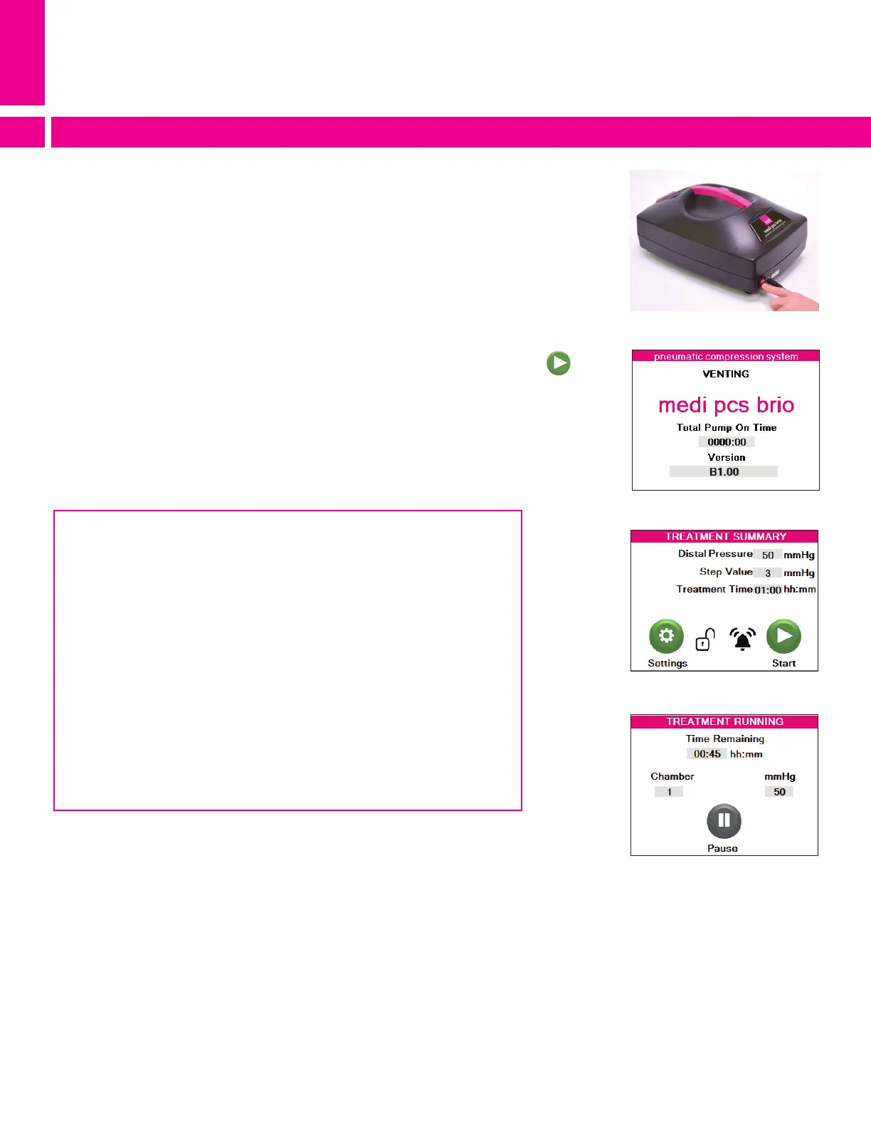 Step 4: The Treatment Running screen will appear (6.4). The PCU will begin the fill-to-fit