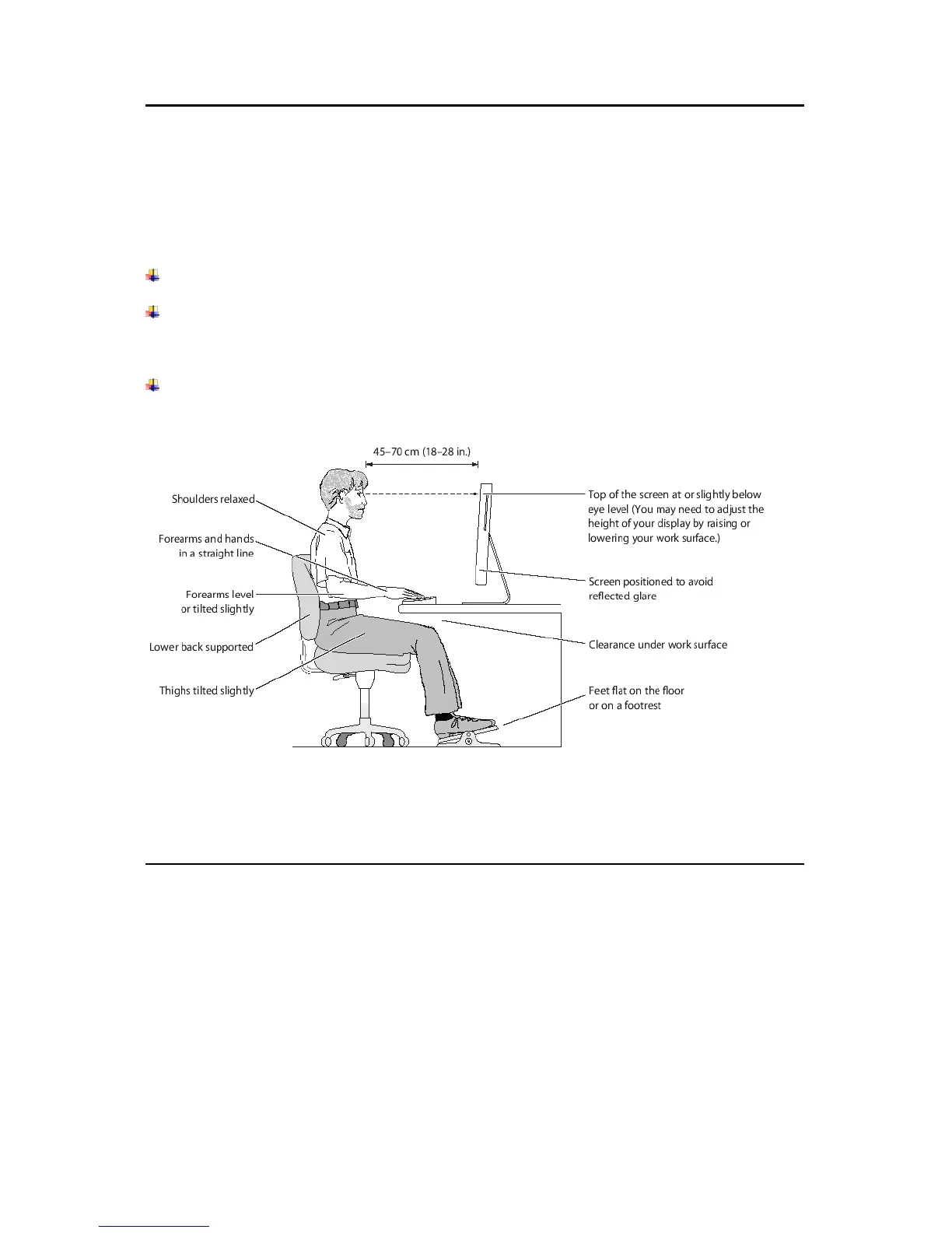 Adjust the height of the chair so your thighs are horizontal and your feet flat on the