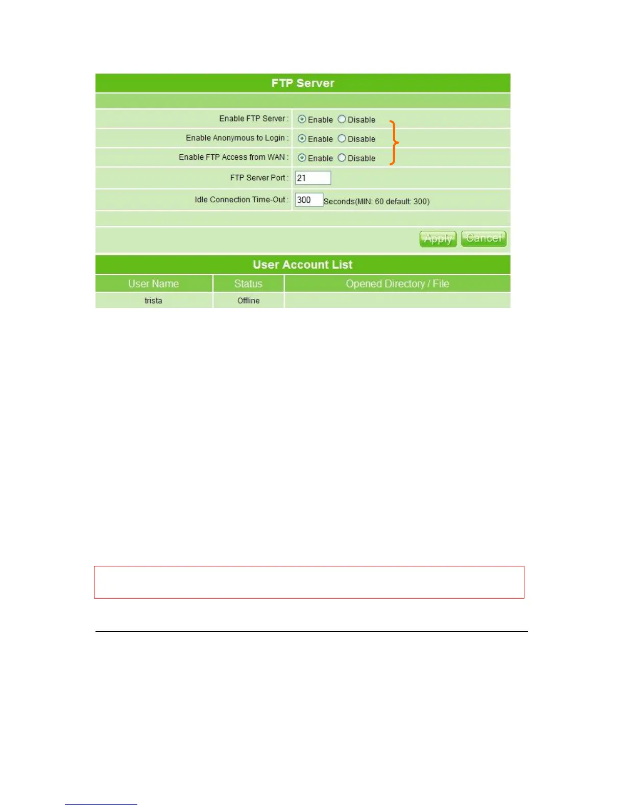 3. Enable FTP Access from WAN: Allow FTP access from WAN side by checking on
