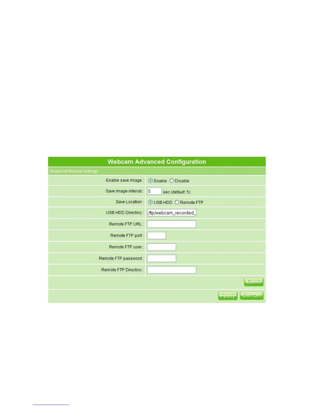 10. Back: Click on Back button for returning to Webcam Basic Setup screen.