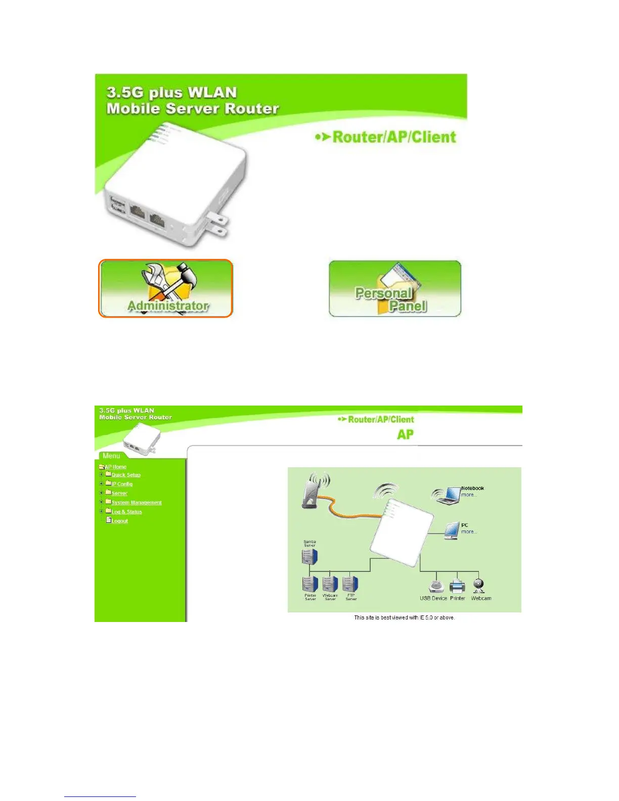 Enter the default value, admin, for both administrator’s name and password and log in the