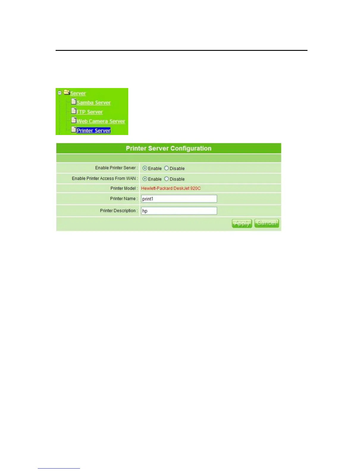 1. Enable Printer Server: Check enable for applying printer server.