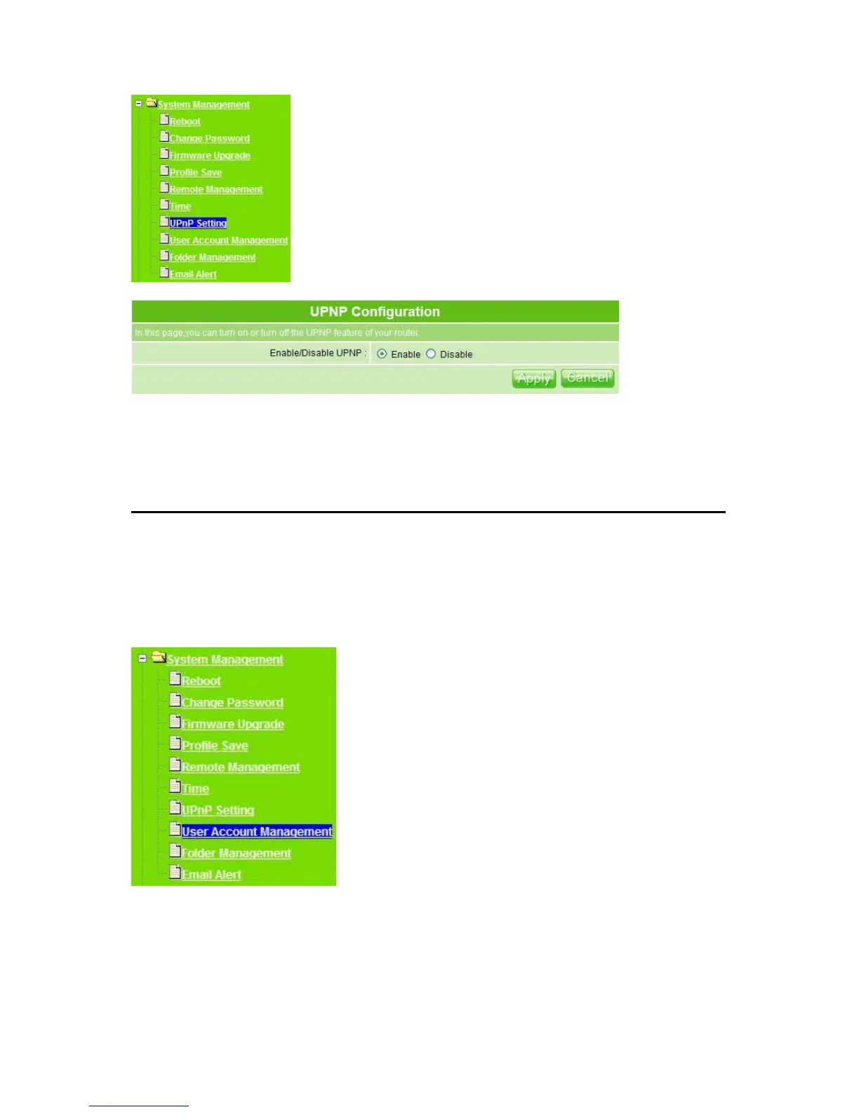 1. Enable/Disable UPnP: Select to enable or disable this service.