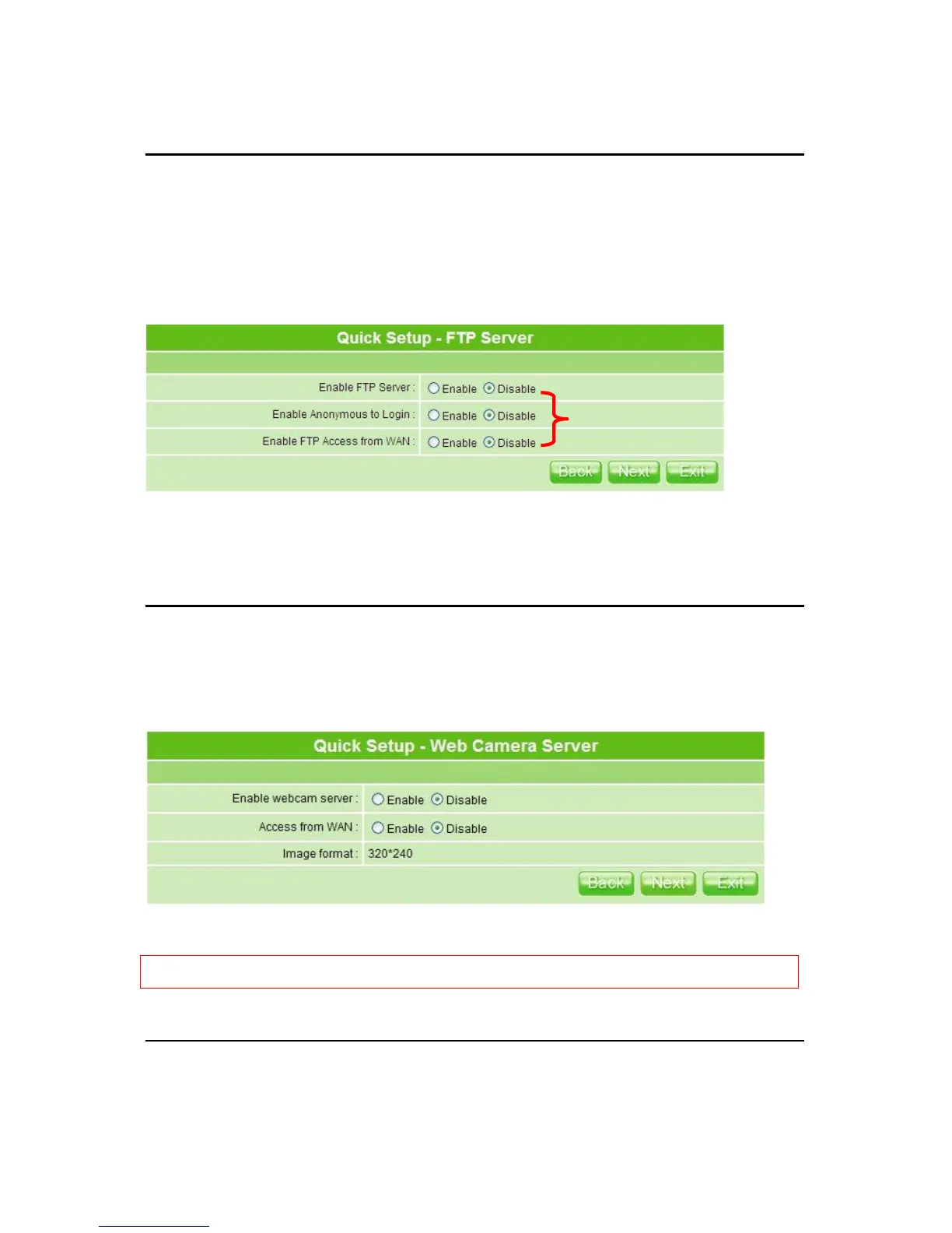 Set the FTP Server and related setting. Disable the function as demand, and click Next to