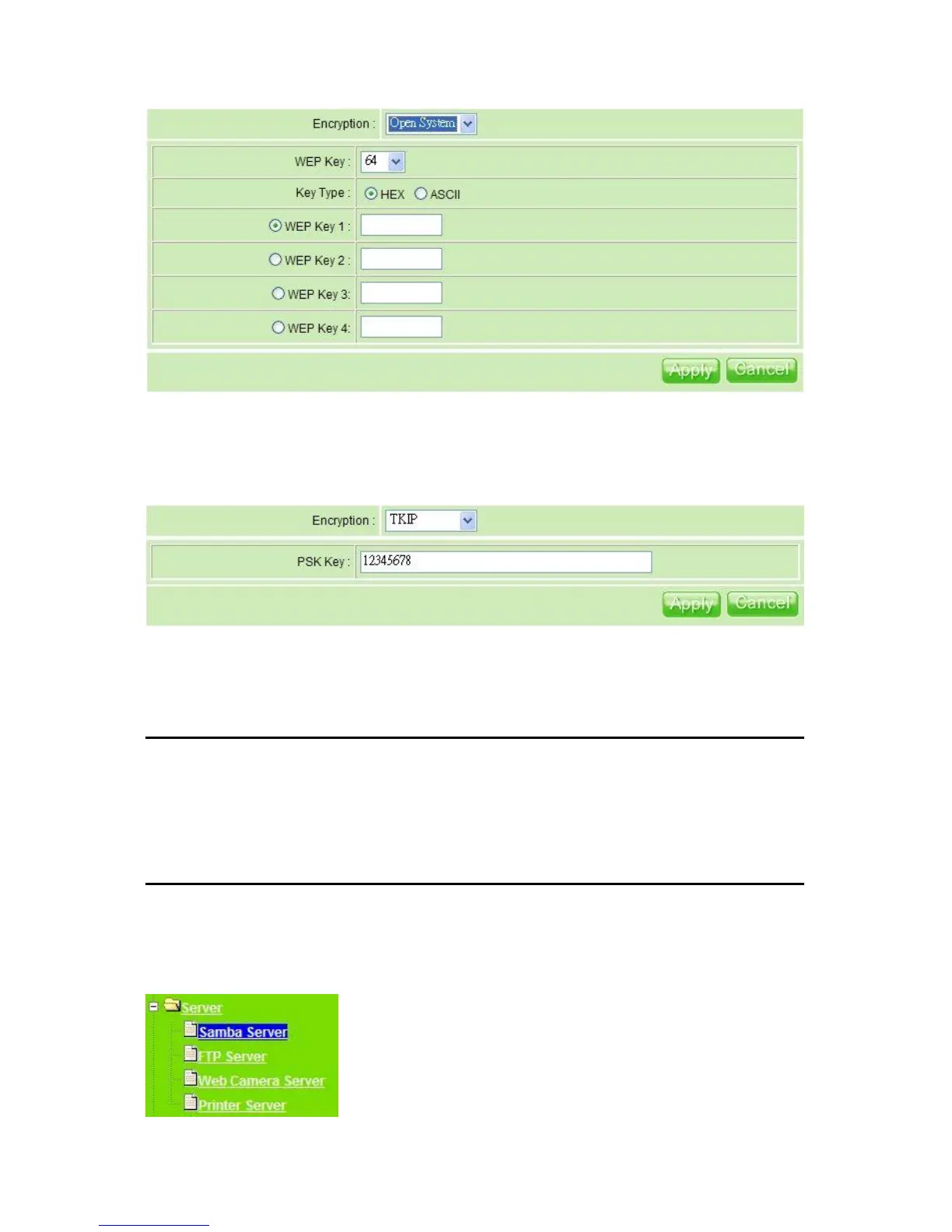 MT4205 provides 4 server setups, including Samba Server, FTP Server, Web Camera