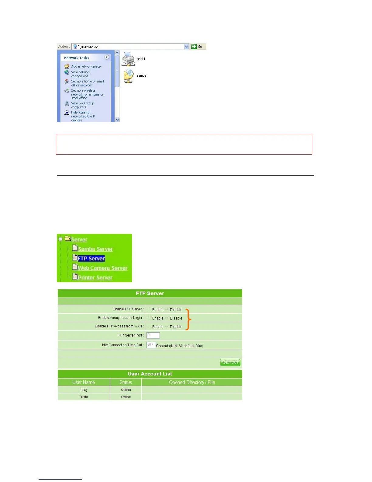 configuring FTP Server, please make sure the storage device is properly plugged into any