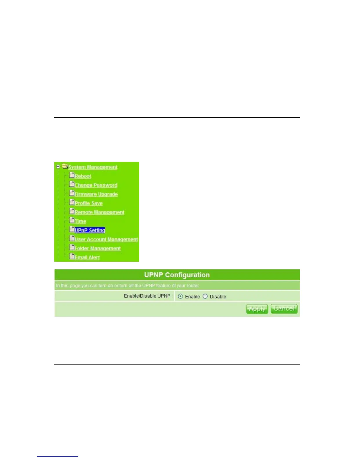 1. Enable/Disable UPnP: Select to enable or disable this service.