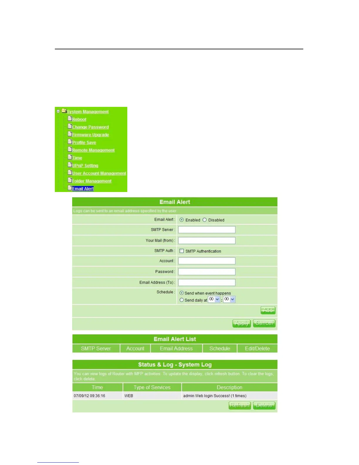 1. Email Alert: Check the enable box to activate the email alert service.