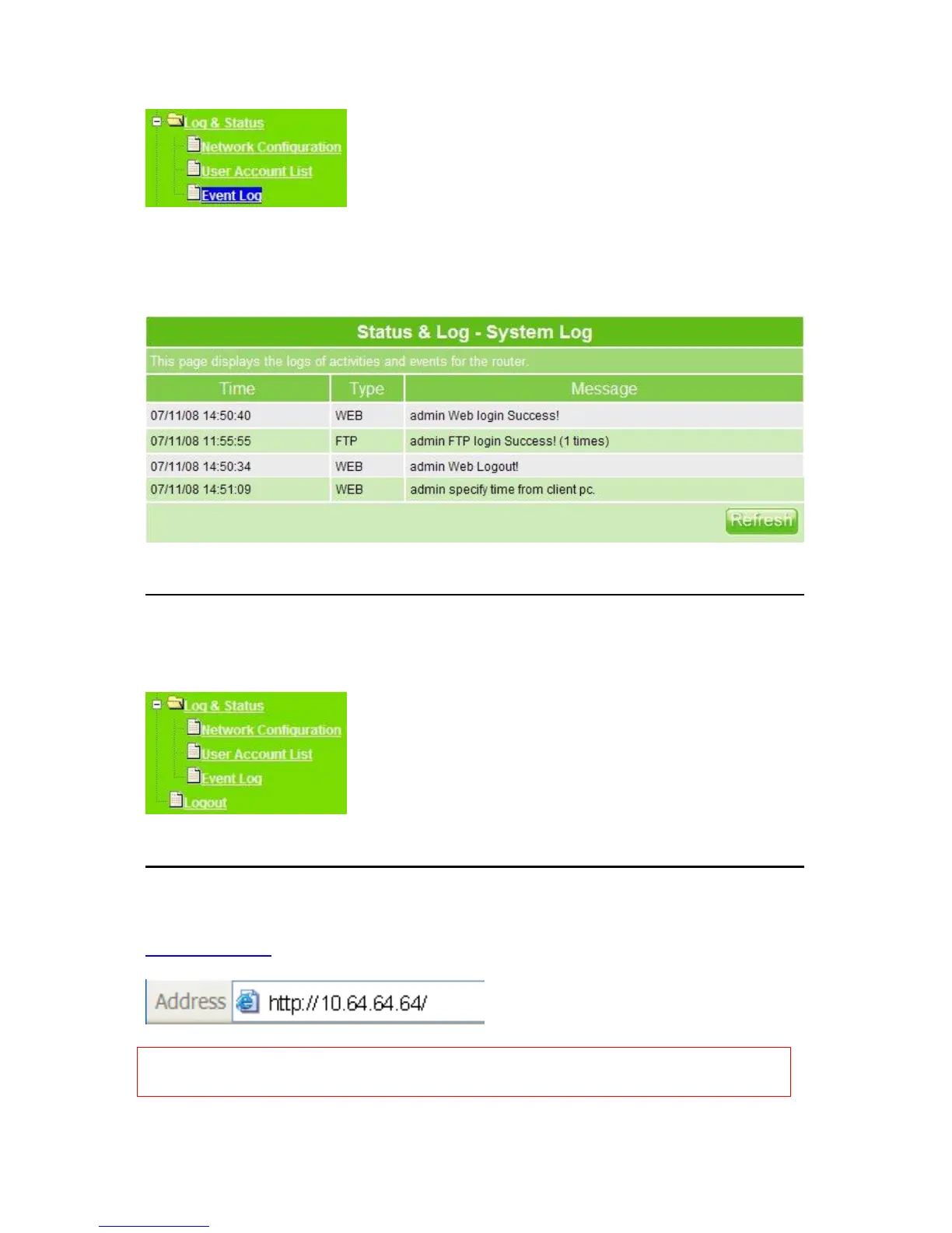 http://10.64.64.64 (Default Gateway) into browser’s blank field.