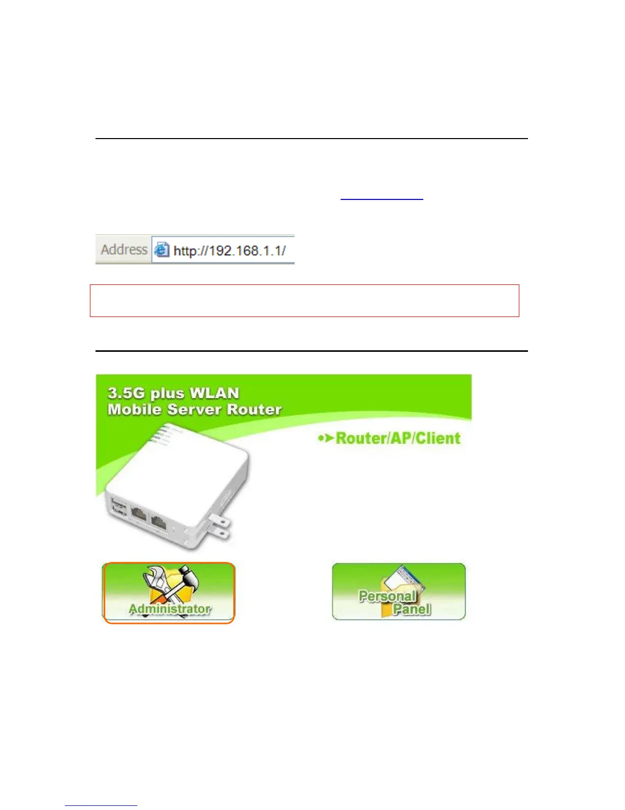 Make sure to switch the mode into Router Mode, then open a Microsoft Internet Explorer,
