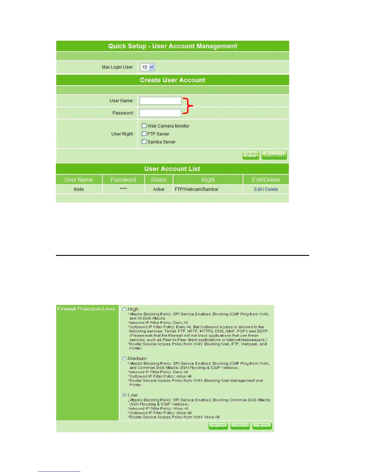 Set each user’s right and space arrangement, and then click on Add button for saving