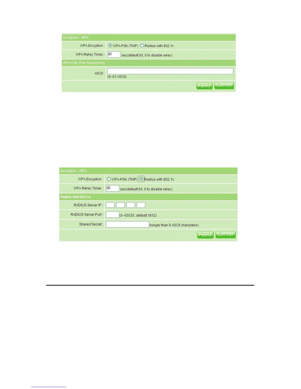 WPA Rekey Timer: Allows for the session keys to be refreshed over time,