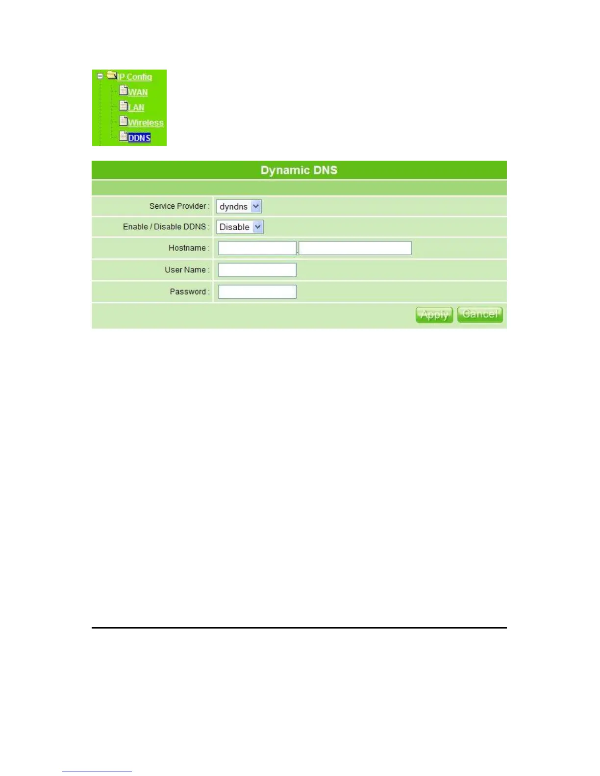Select enable to use DDNS function. Each time your IP address to WAN is changed,
