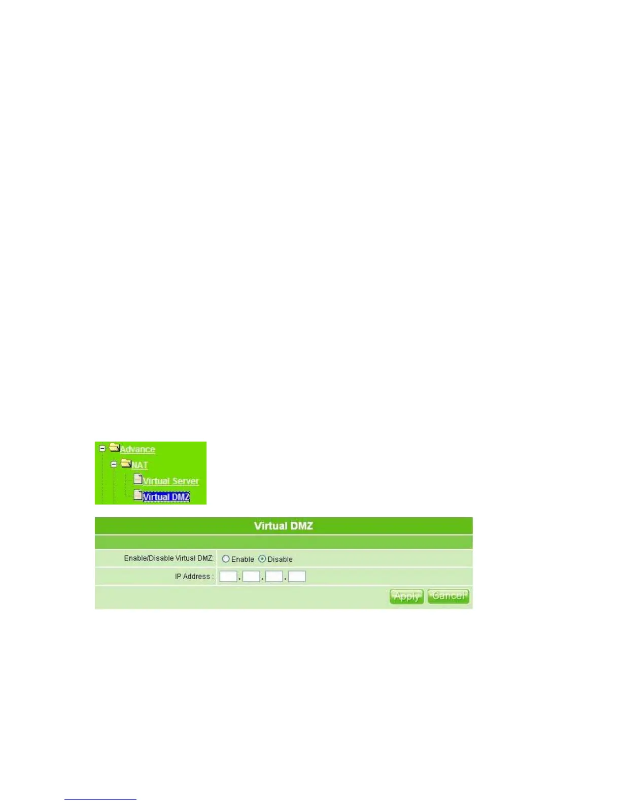 1. Enable/Disable Virtual DMZ: Check Enable to apply Virtual DMZ for the Router.