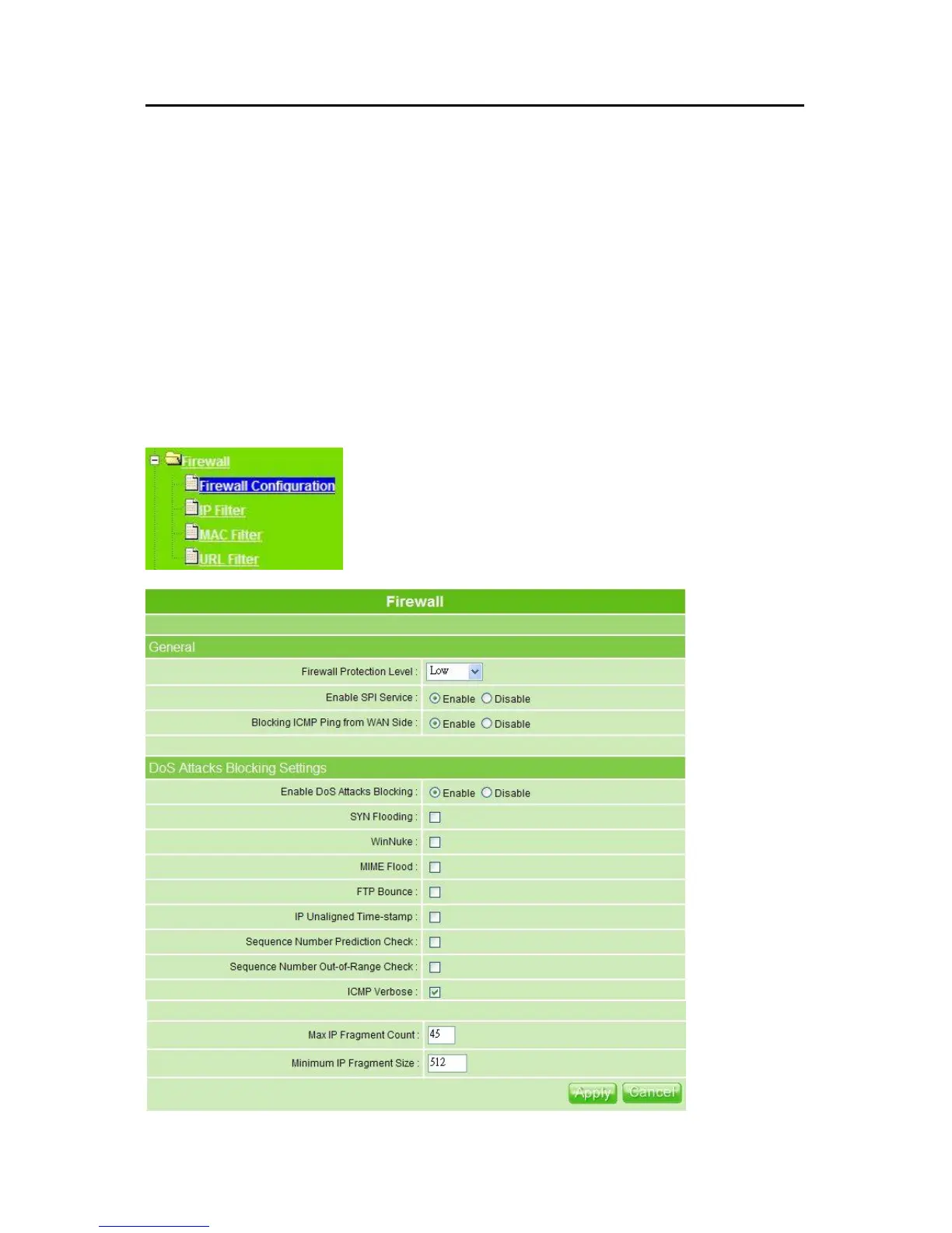 The Firewall function helps to protect your local network against attacks from outside. It also