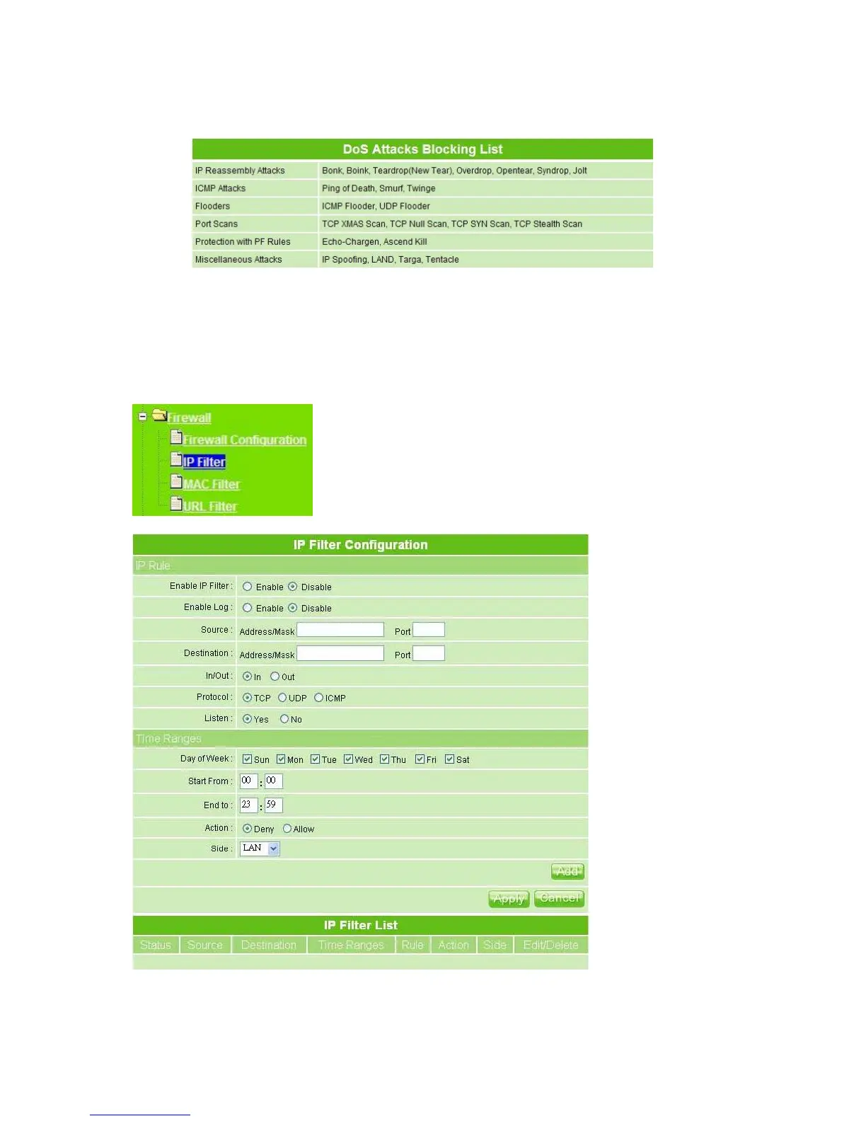1. Enable IP Filter: Check enable or disable to apply IP Filter function.