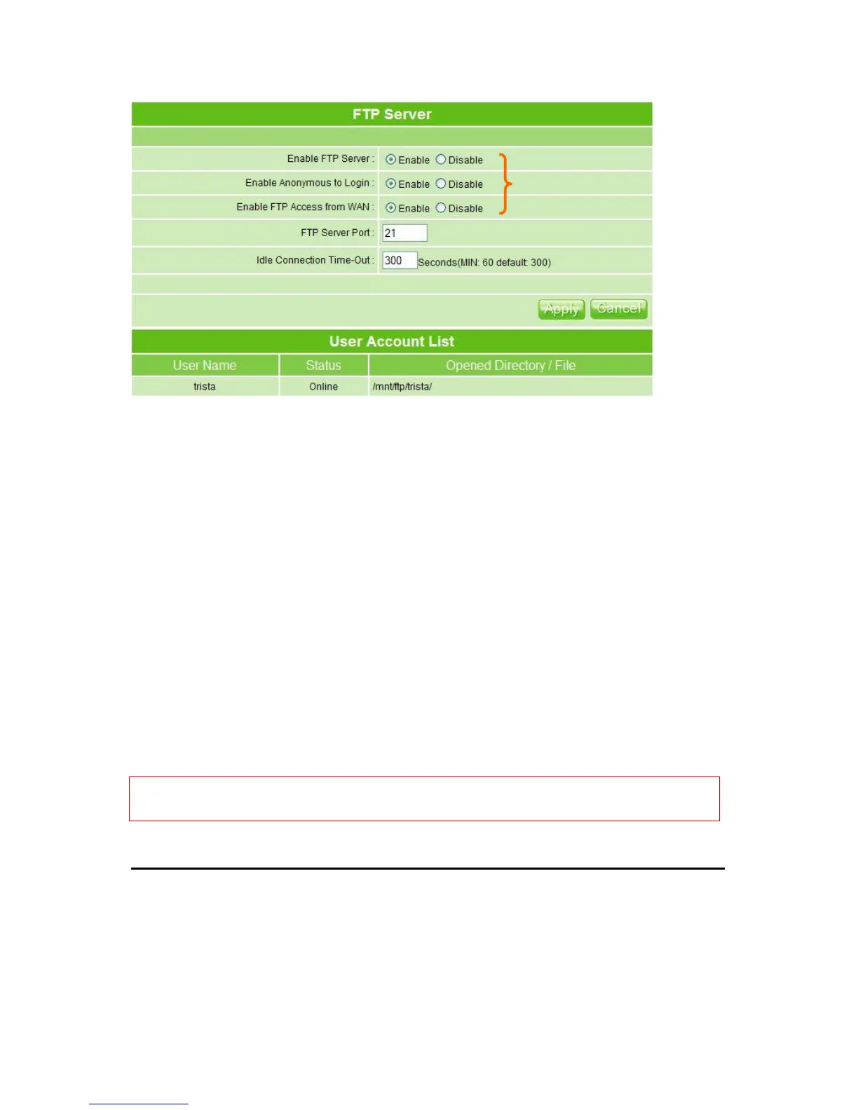 3. Enable FTP Access from WAN: Allow FTP access from WAN side by checking on