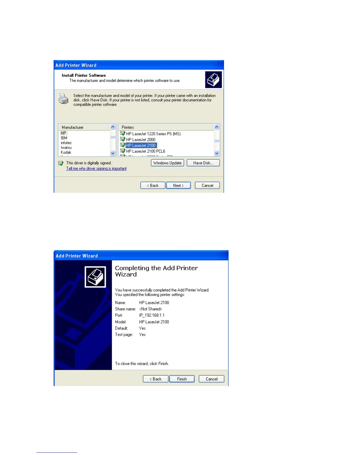 It shows you the printer settings that you have specified, and then click Finish.