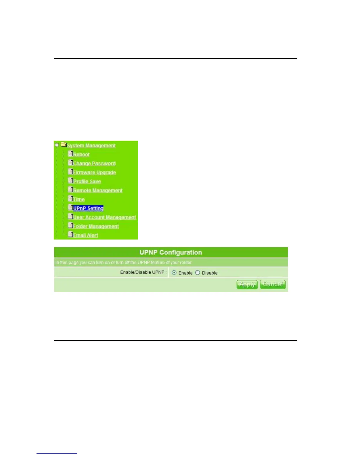 1. Enable/Disable UPnP: Select to enable or disable this service.