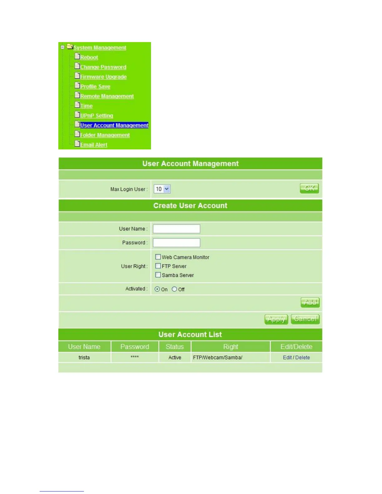1. Max Login User: Set up the maximum users to log in at the same time, select the
