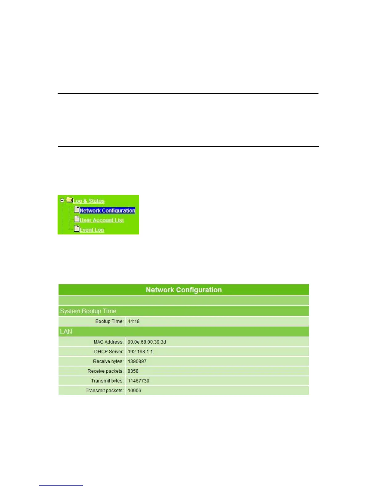 Network Configuration shows all connection status of LAN, WAN, Wireless and plugged