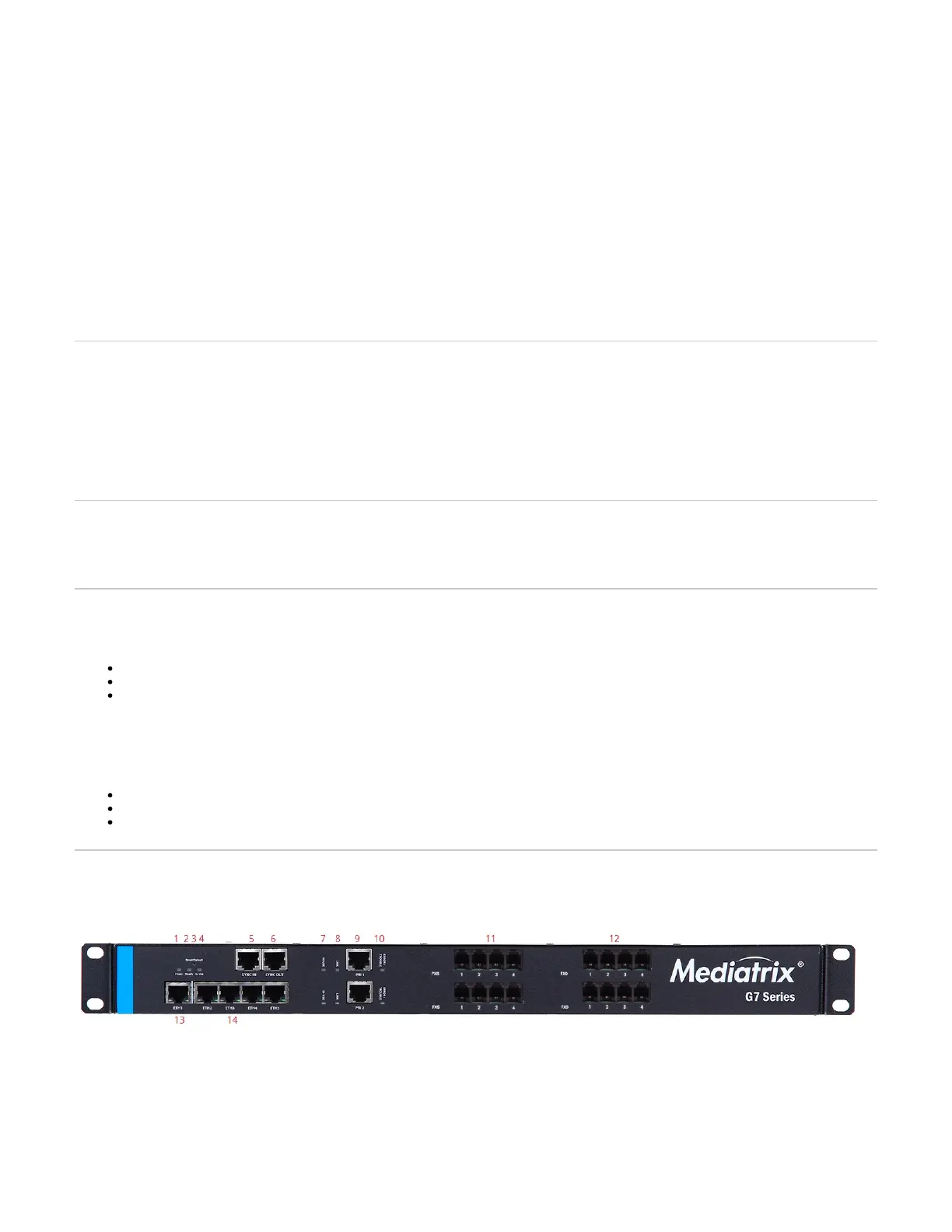 Note: The Mediatrix G7 is highly customizable in the sense that it may have one or several types of ports, or none. Therefore the following image may not