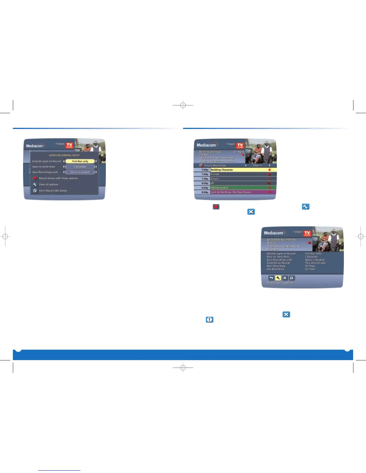 Recording Options, or select X to delete this program from your list of Future