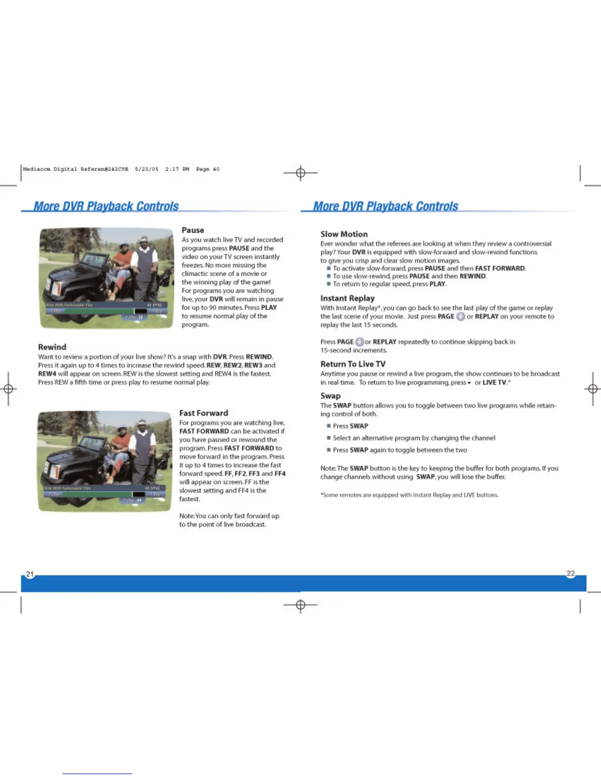 Mediacom DVR - Mediacom DVR Advanced Playback Controls; Mediacom DVR Playback Functions