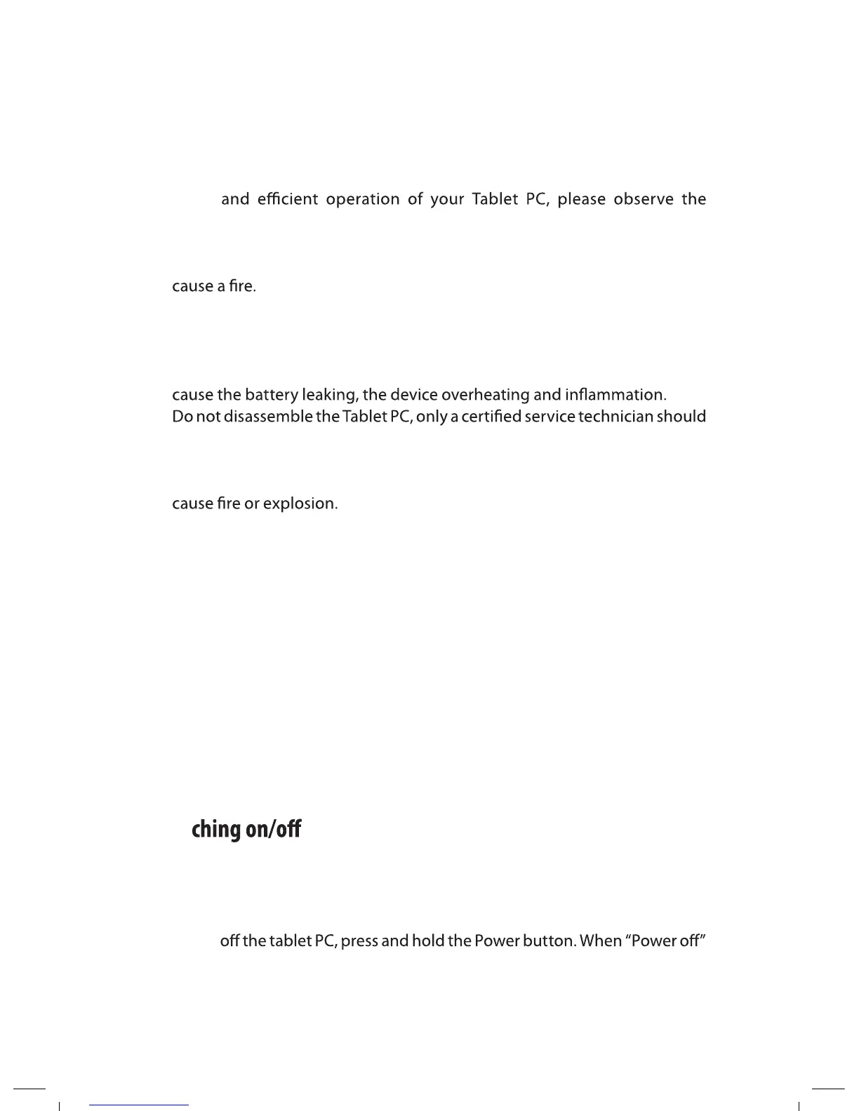 Do not spill any liquids on the Tablet PC as it may damage the device or •