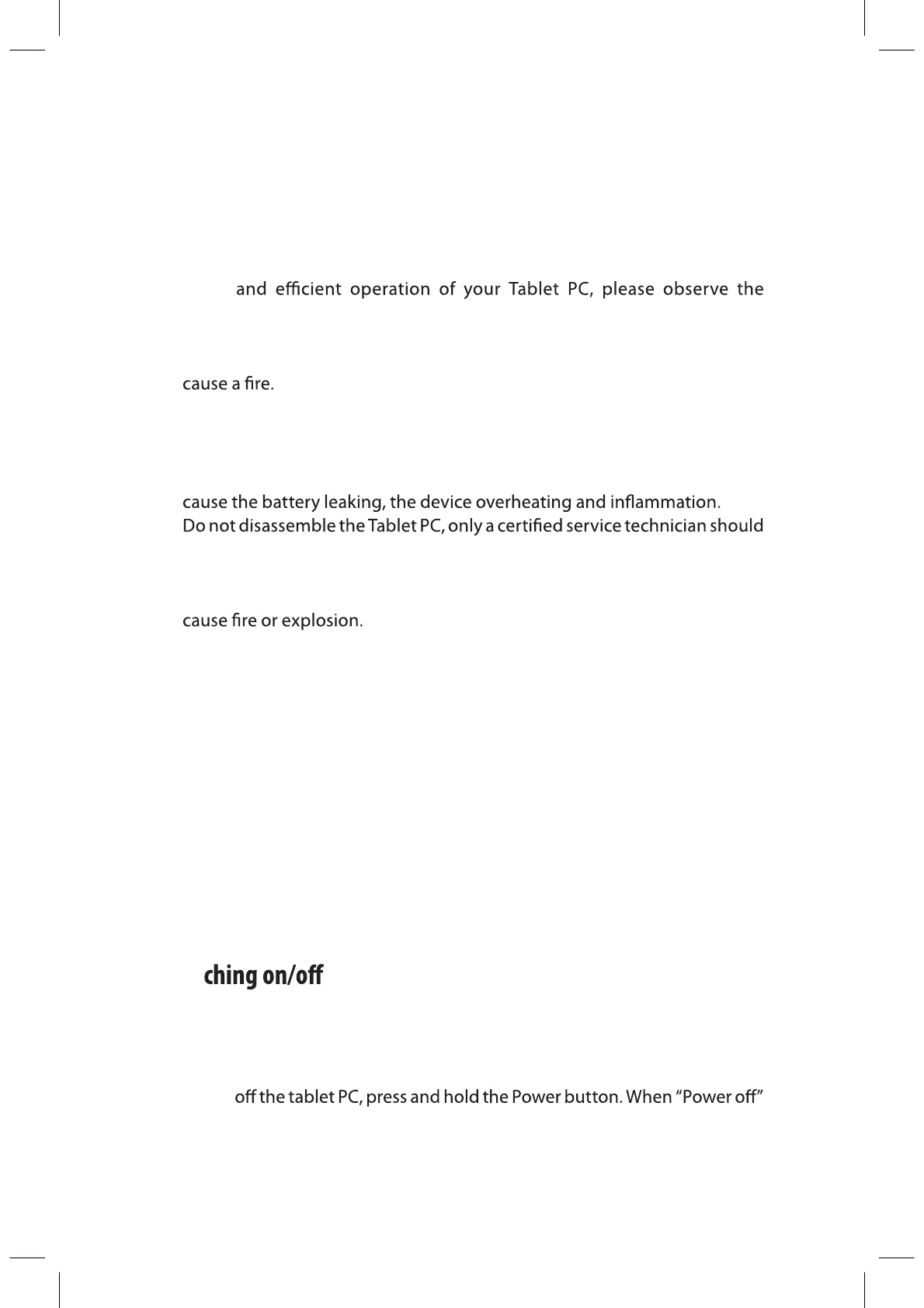 Do not spill any liquids on the Tablet PC as it may damage the device or t