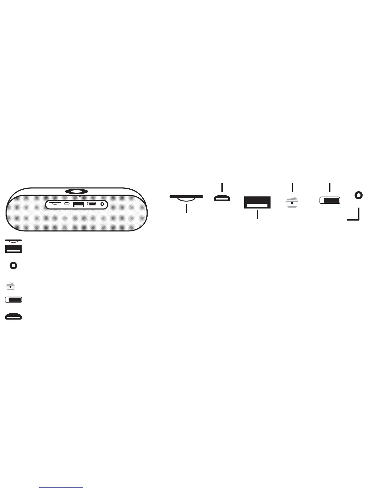 On and off switch. Slide the switch to the left to turn on the speaker. Slide the switch to the right again to turn off the device.