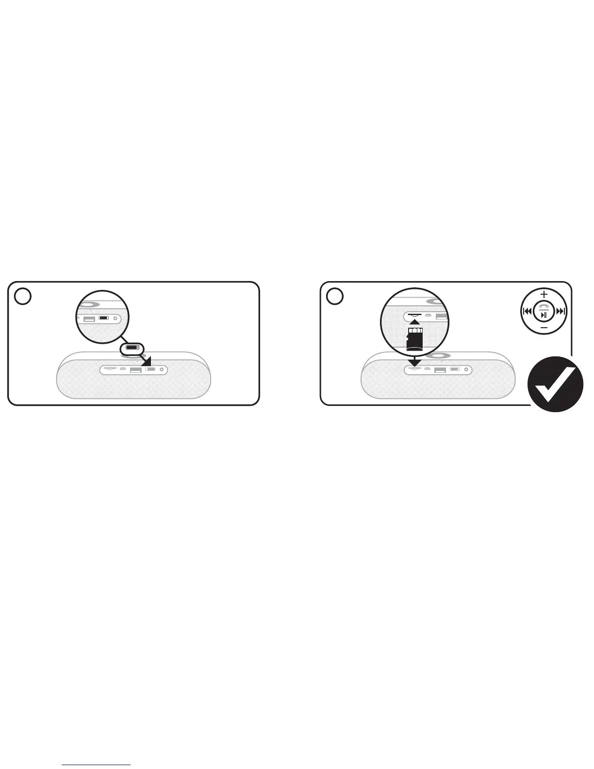 2. The memory card will be detected automatically and the speaker starts to playback your music. Use the navigation pannel for music control. Push