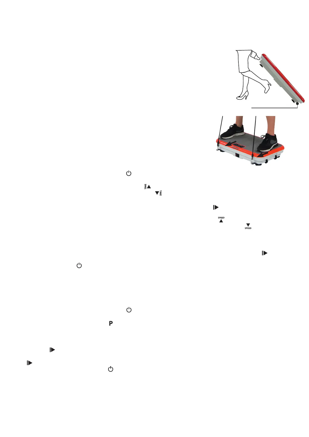 Füße auf das Gerät stellen. Jetzt das Gerät einschalten, um die Intensität der Bewegungen zu tes-