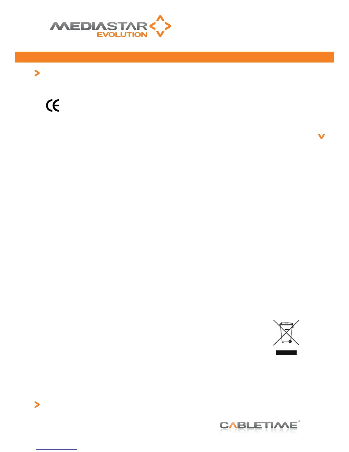 Cabletime Limited declare this equipment has been tested and found to comply with the limits for a Class