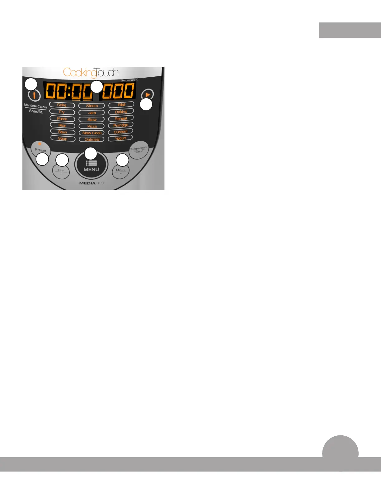 6. Anzeige TEMPERATURE/TIME ermöglicht Temperatur und vorgewähl-