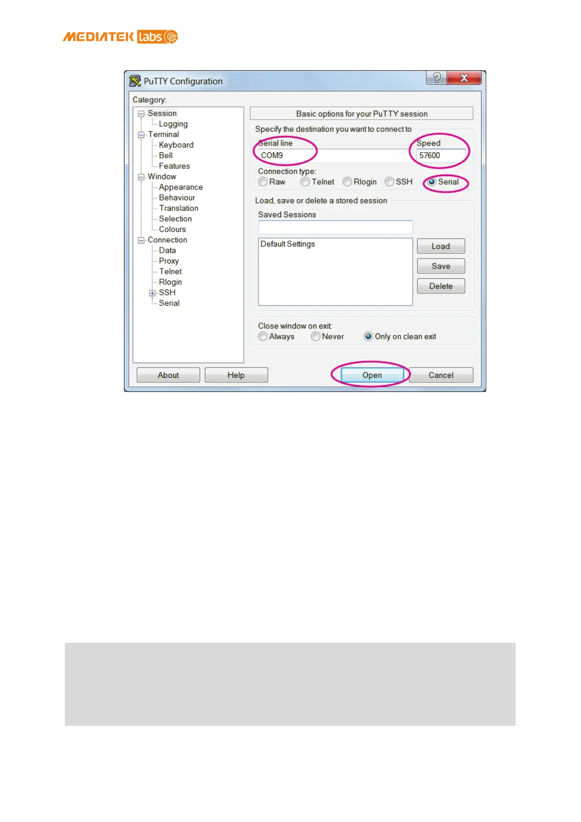 Figure 15 Using UART to USB cable to access system console in Windows