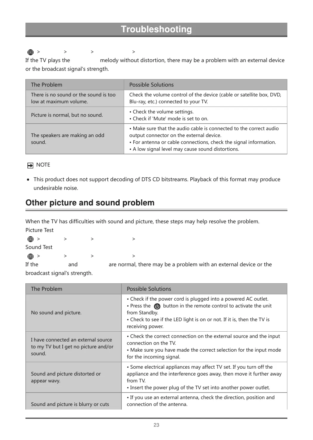 IftheSoundTestandPictureTestarenormal,theremaybeaproblemwithanexternaldeviceorthe