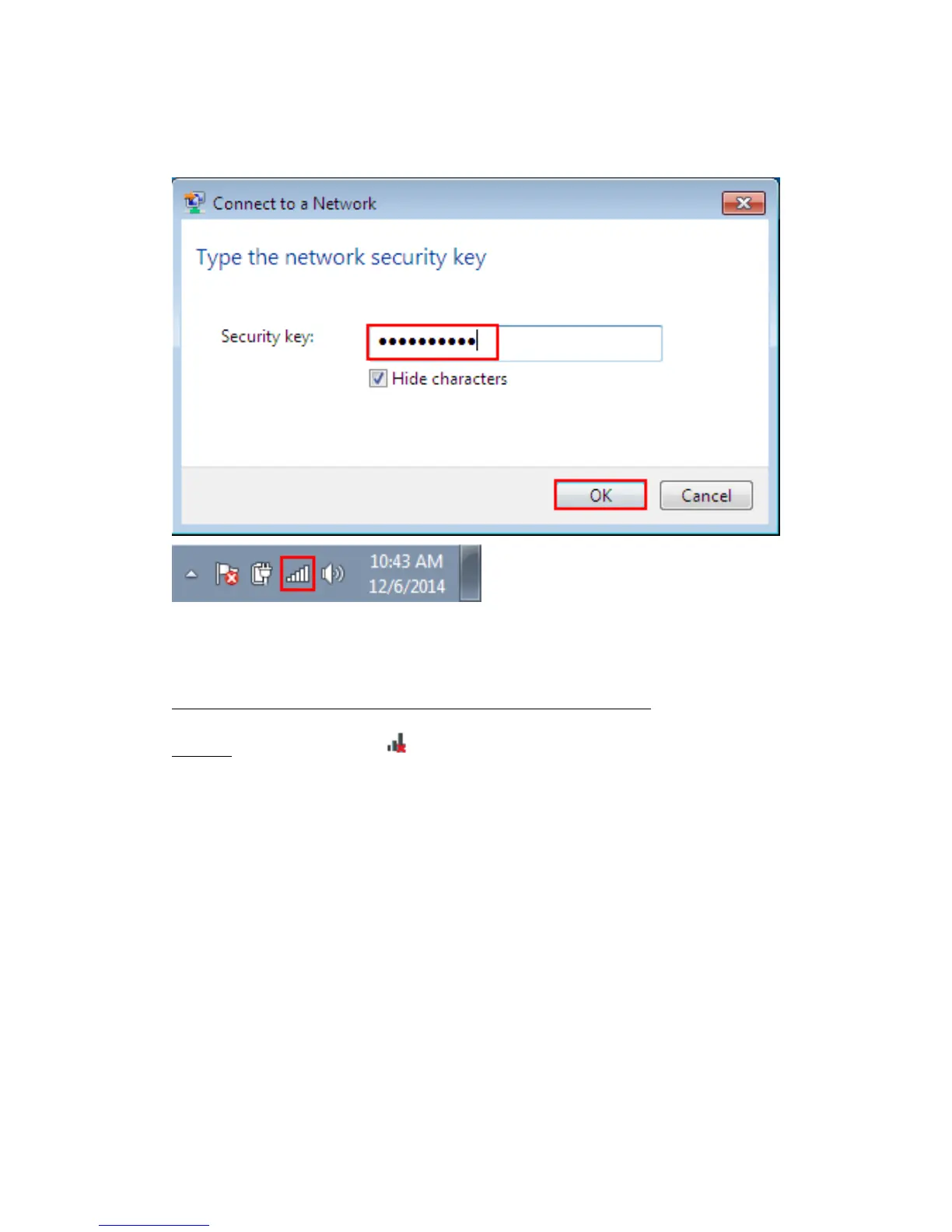 Open the wireless networking page and enter the security key. Click the “OK” button.