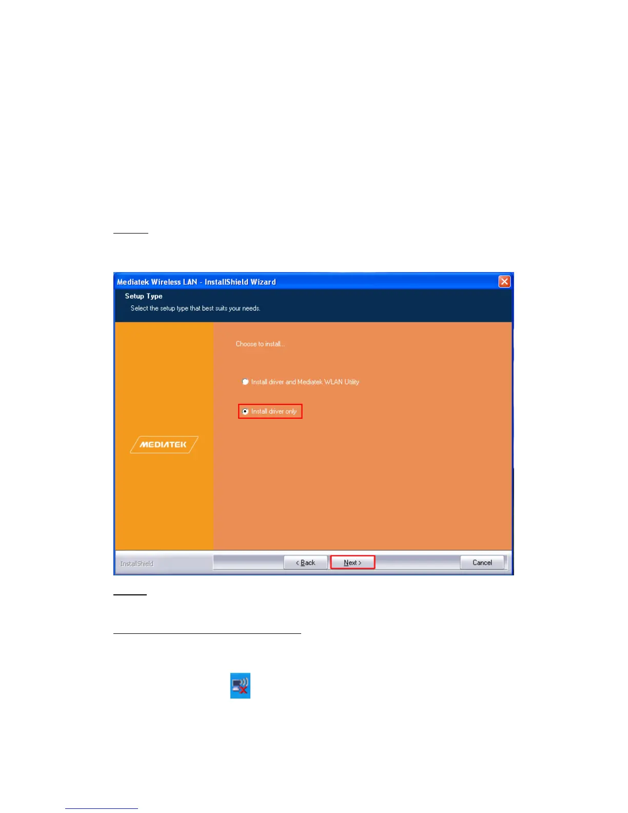 Here you have two options: “Install Driver and Mediatek WLAN Utility” or “Install