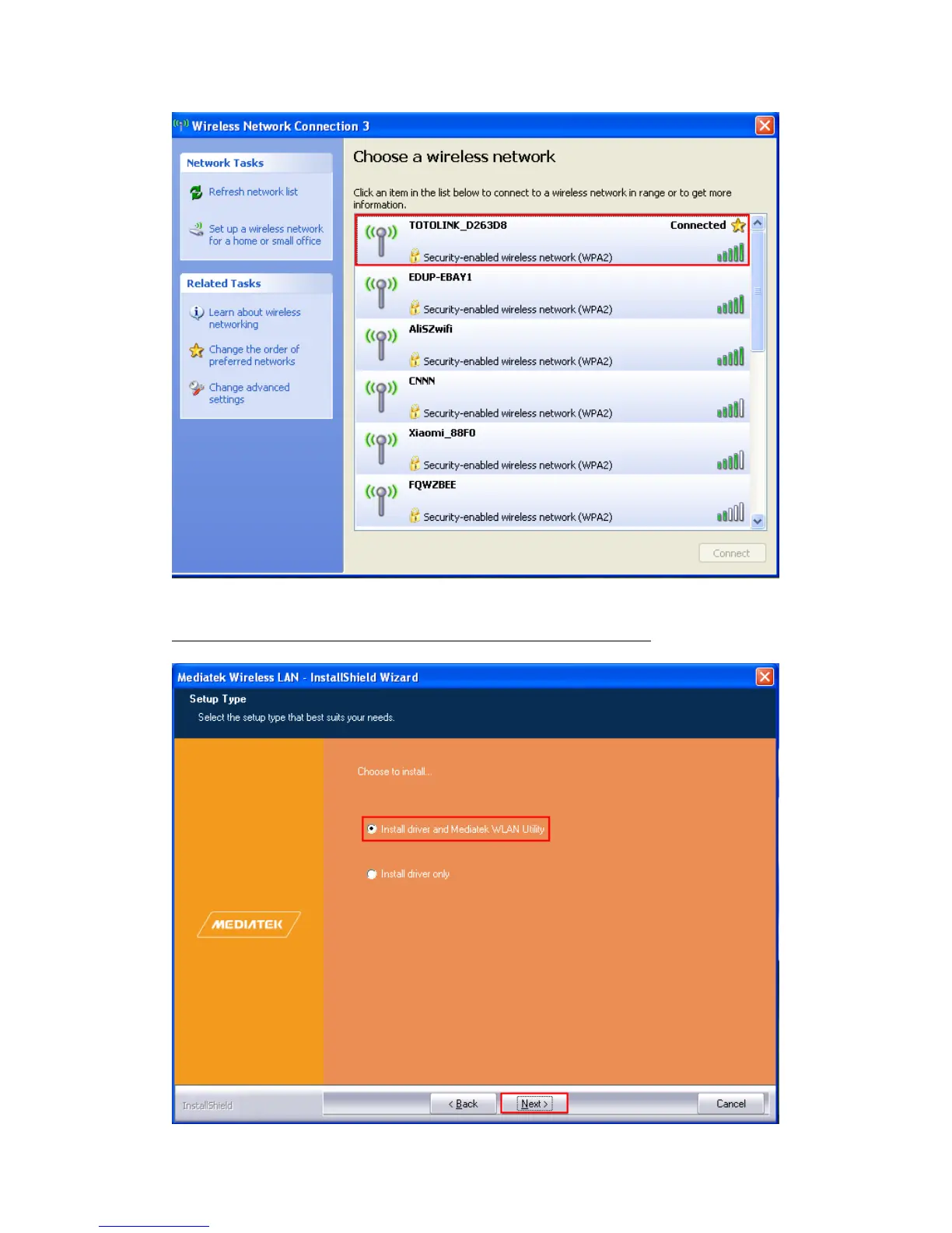 If You Chose “Install Driver and Mediatek WLAN Utility”: