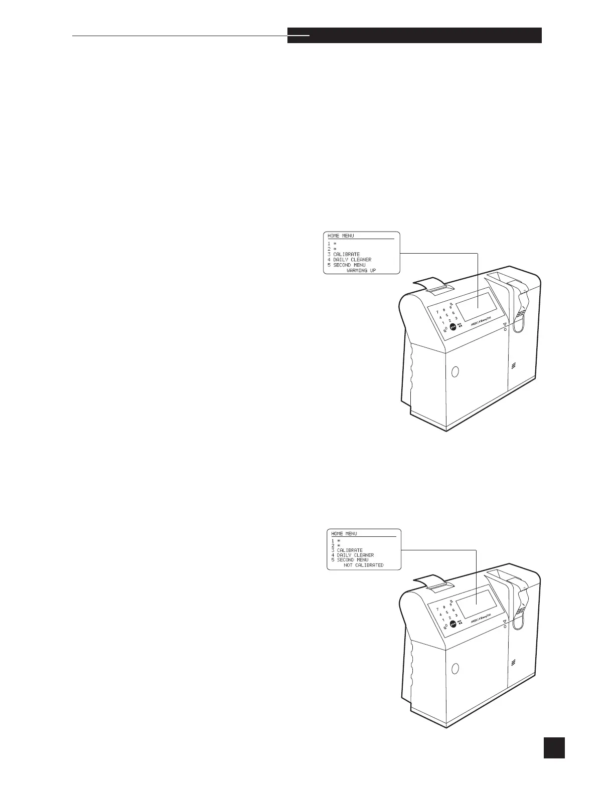 start) the WARMING UP message disappears. Calibration can now