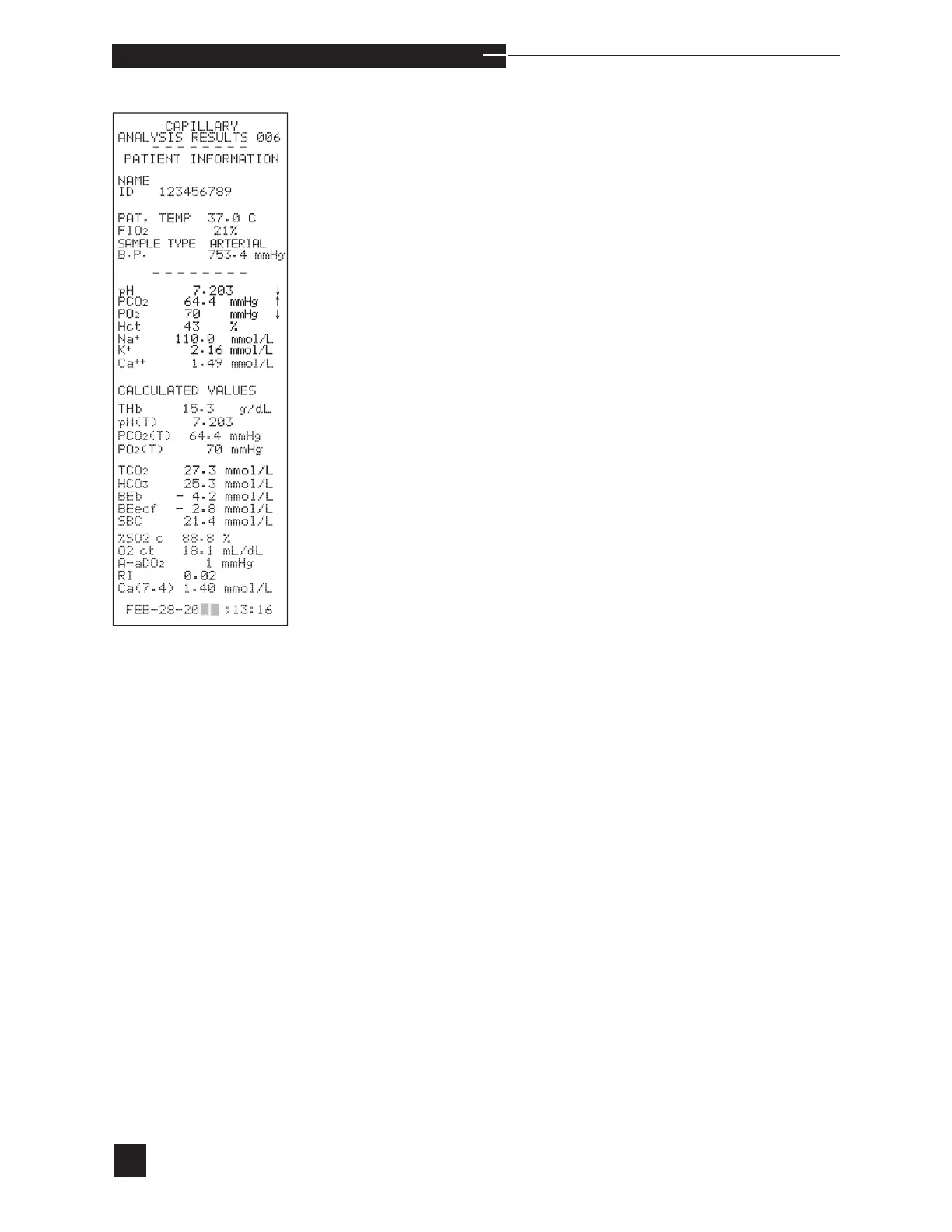 low (↓↓) or high (↑↑) on both the display and the printout. Patient