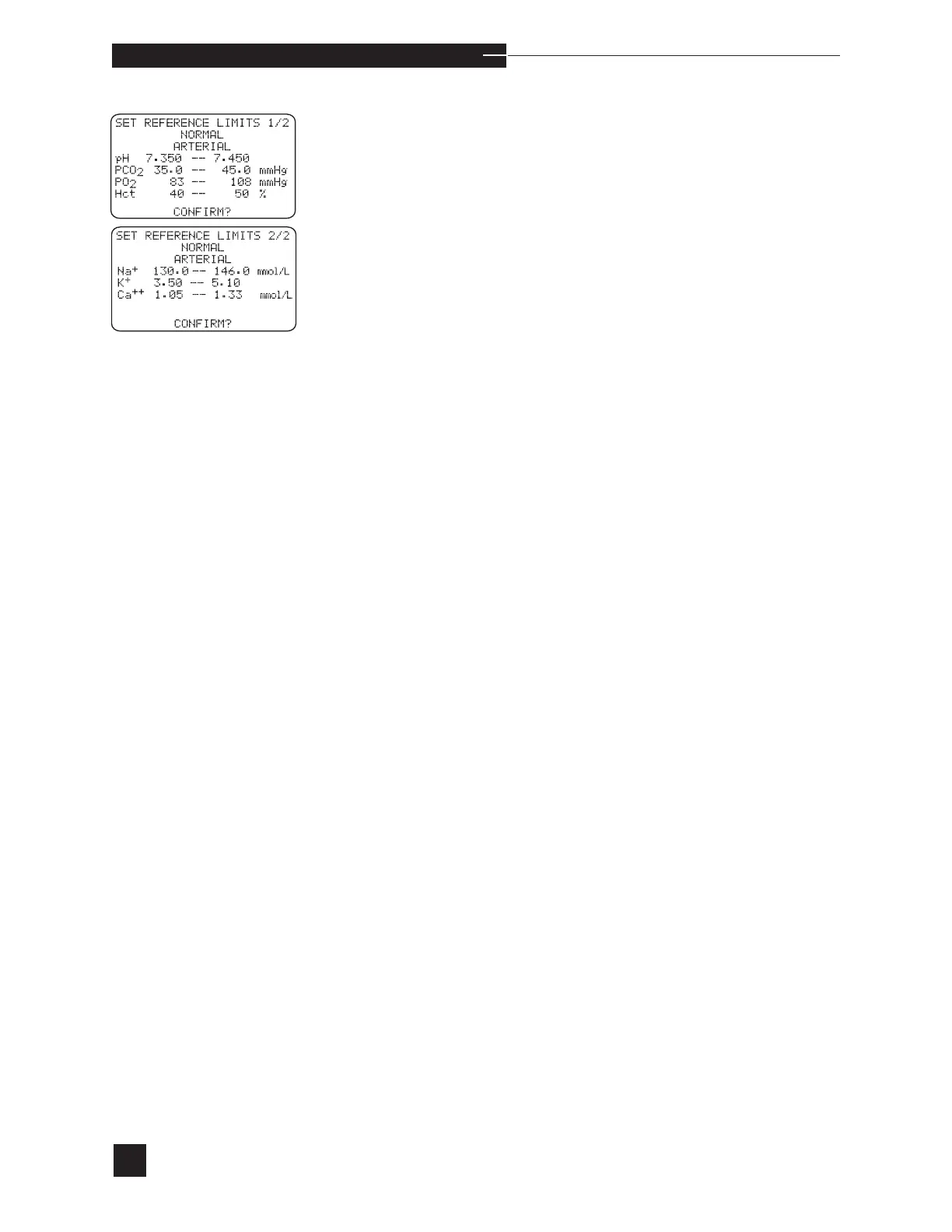 venous or venous. To change the ranges, press NO to CONFIRM?.