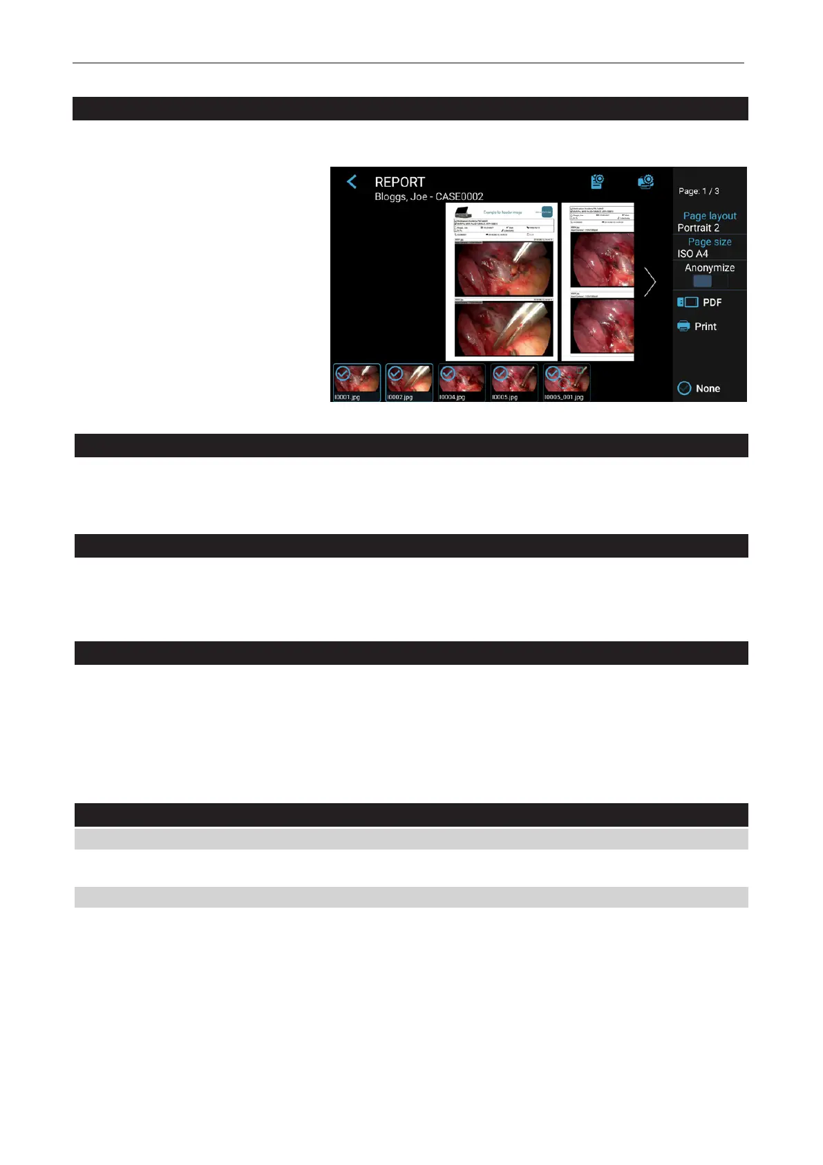 Still images of a selected study can be saved as a PDF report. You can add notes which will appear on the report. The PDF report will