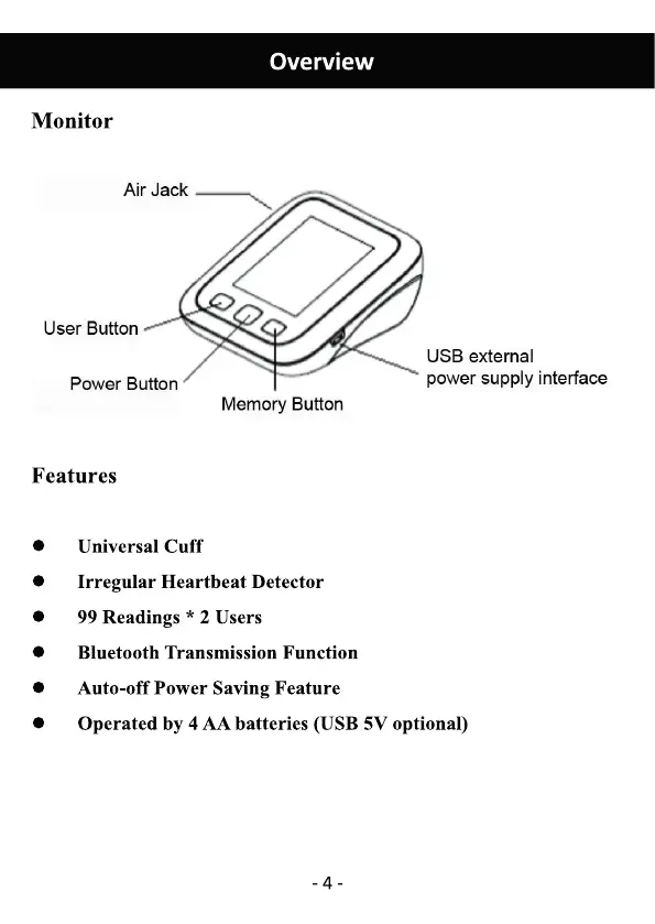 Medicare LIFESENSE A2 PLUS - Product Overview; Monitor Components; Key Features