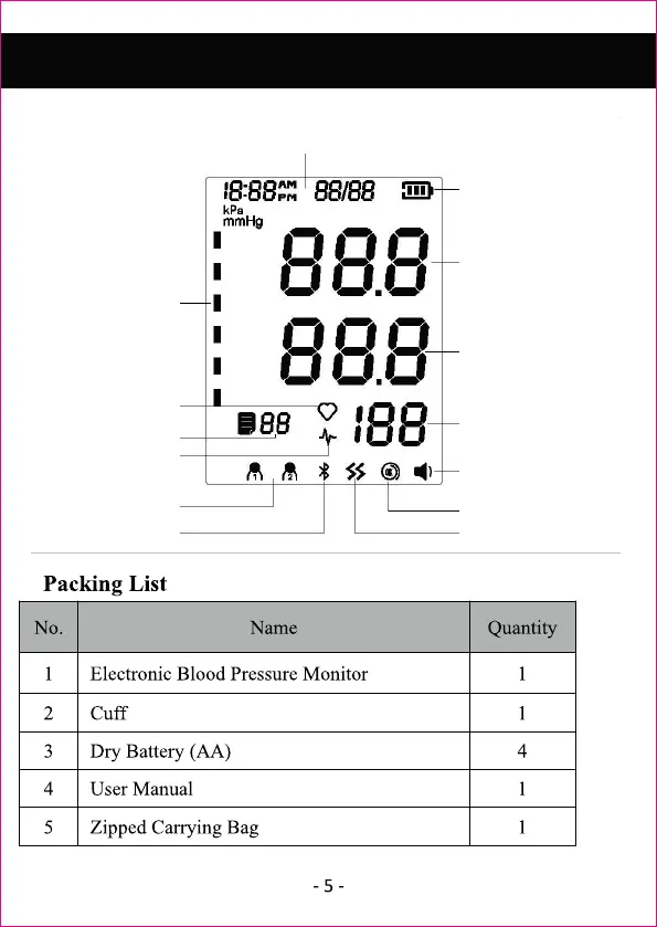 Medicare LIFESENSE A2 PLUS - Display and Package Contents; Display Elements; Packing List