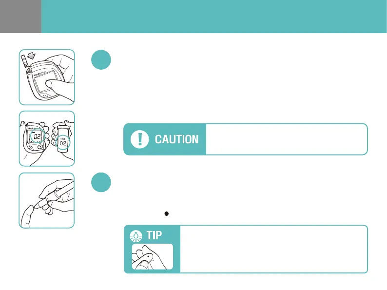 Obtain a blood drop from your ngertip using the lancing device (see page